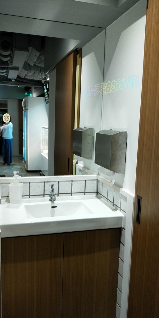 餃子樂信義店有化妝室。門外有洗手台,有洗手乳跟擦手紙可供使用。
