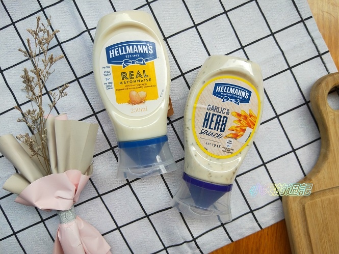 Hellmann's 經典原味美乃滋跟巴西利蒜香醬沾醬入菜都適合。
