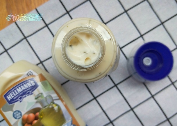 Hellmann's 巴西利蒜香醬散發著濃郁的蒜香味,吃起來給我的感覺是還滿像凱薩醬。