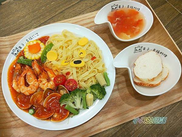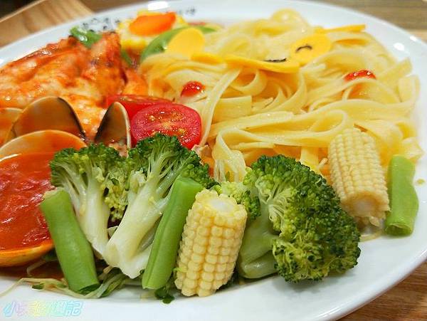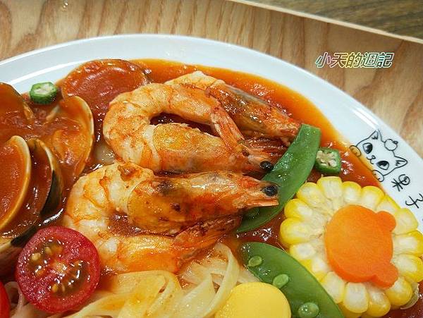 限量特餐的其中一種是蕃茄海鮮草蝦蛤蜊配義大利麵(也可選造型飯)320元。