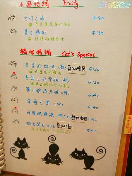 這裡還有水果特調跟貓咪特調(這名稱真的讓我無法望文生義,每種都值得向店員或老闆娘詢問、了解。