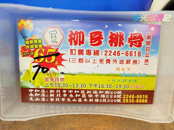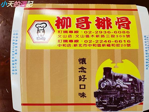 柳哥排骨目前在台北市文山區還有新北市中和區都有分店,可以參考便當封面。
